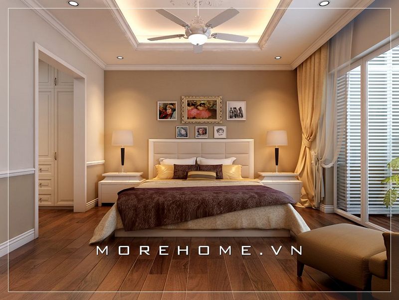 Morehome đưa đến cho bạn mẫu thiết kế phòng ngủ biệt thự đẹp, sang trọng và tinh tế. Chất liệu được sử dụng tại mẫu phòng ngủ hiện đại này chính là chất liệu "gỗ tự nhiên" nhập khẩu cao cấp.