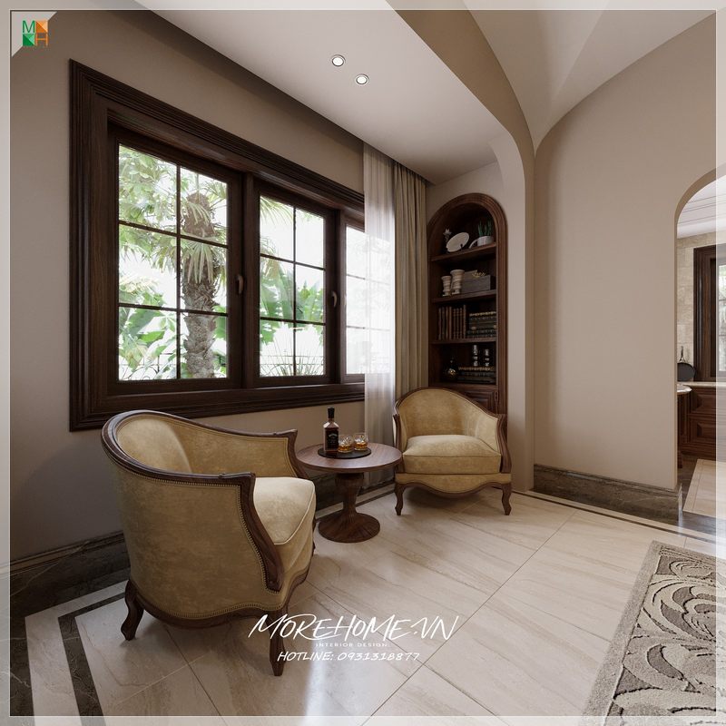 Không gian trang trí nội thất tân cổ điển sang trọng quý phái nơi nghỉ ngơi thư giãn cho gia chủ sau những giờ làm việc mệt mỏi.