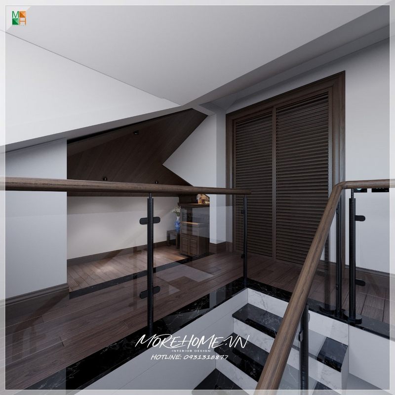 Lối đi lên tầng nhà phố, biệt thự trang trí nội thất hiện đại màu nâu trầm ấm cúng