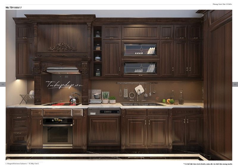 Thiết kế tủ bếp tân cổ điển bằng gỗ óc chó là một sự kết hợp hoàn hảo giữa ý tưởng thiết kế và họa tiết cầu kỳ, tinh tế, sang trọng và phức tạp.