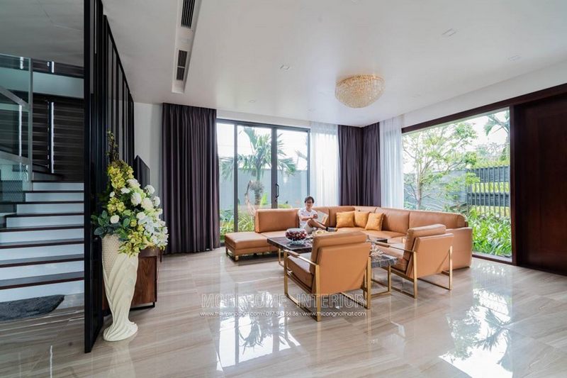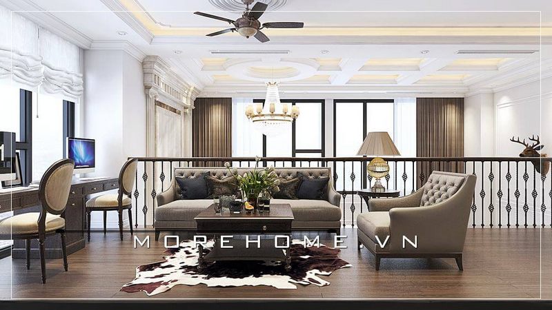Mẫu thiết kế phòng khách biệt thự có phong cách tân cổ điển sang trọng, mang đến sự lôi cuốn cao cấp.